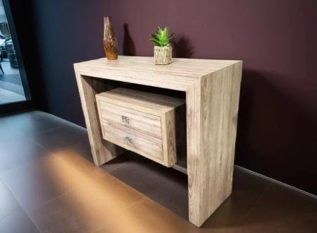 Κατασκευασμένο από υψηλής ποιότητας ξύλο σε φυσική απόχρωση, ενσωματώνει δύο ευρύχωρα συρτάρια με διακριτικές μεταλλικές λαβές, ιδανικά για την αποθήκευση κλειδιών, αλληλογραφίας και άλλων μικροαντικειμένων που χρειάζεστε πρόχειρα κατά την είσοδο ή την έξοδο από το σπίτι.