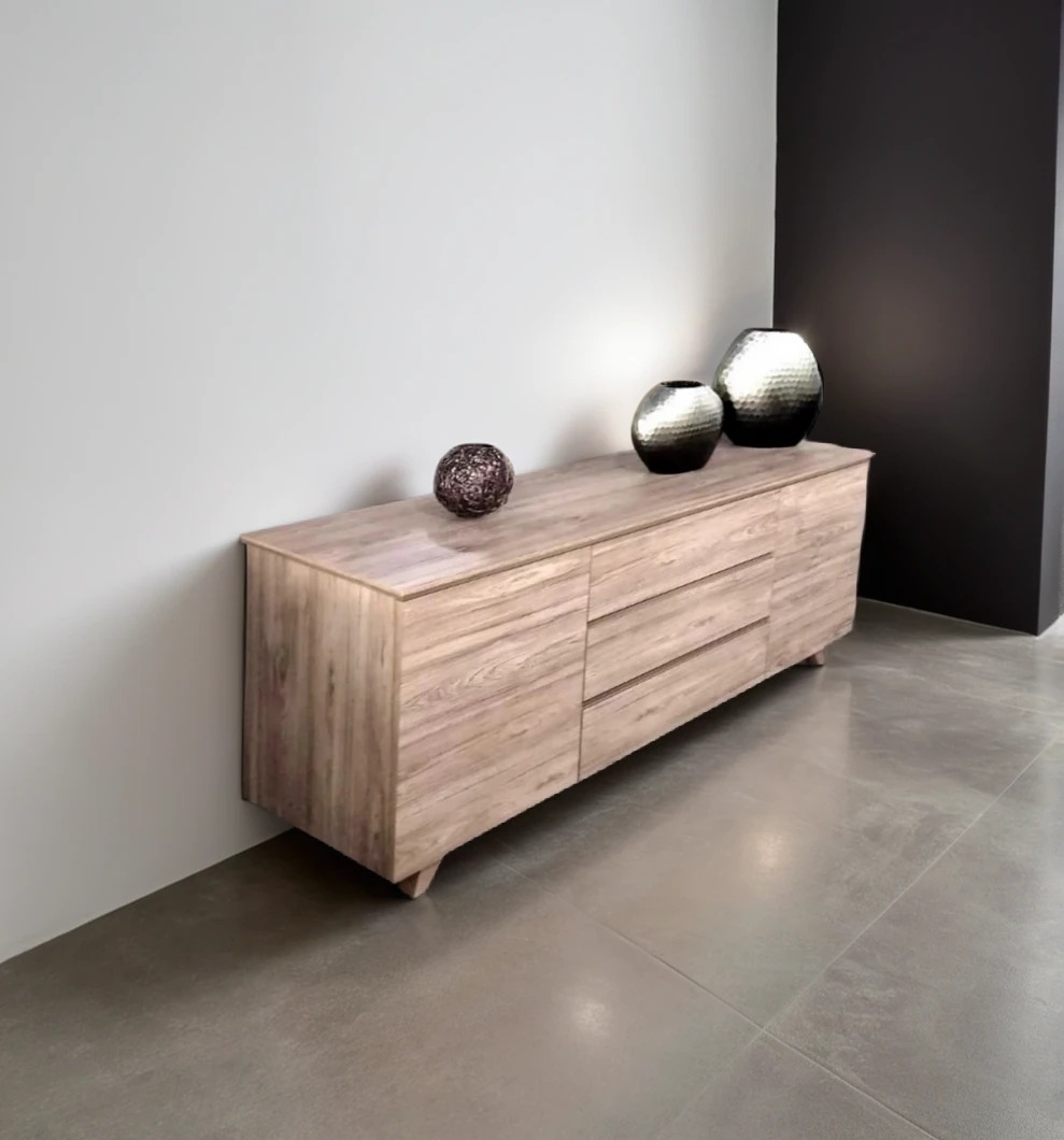 - Με τρία ευρύχωρα συρτάρια στο κέντρο και δύο ντουλάπια στα πλαϊνά, αυτός ο μπουφές παρέχει άφθονο αποθηκευτικό χώρο για να οργανώσετε τα αντικείμενά σας με στυλ. Η ποιοτική κατασκευή και η προσοχή στη λεπτομέρεια εξασφαλίζουν την ανθεκτικότητα και τη μακροχρόνια χρήση του επίπλου.