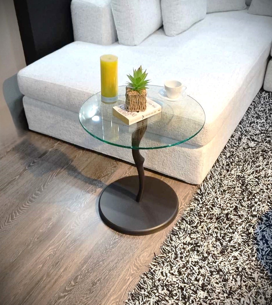 - Άπλες γραμμές με καθαρή, στρογγυλή γυάλινη επιφάνεια και λεπτή βάση. Ιδανικό για μοντέρνο ή μίνιμαλ σαλόνι ή και υπνοδωμάτια.