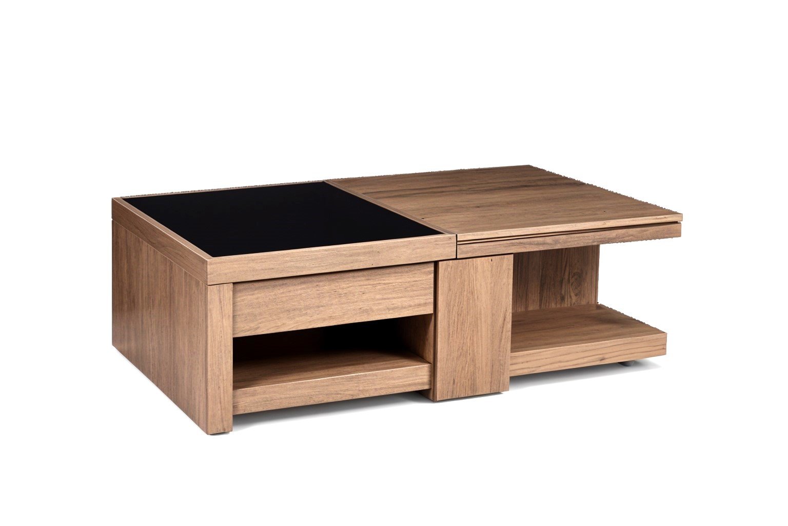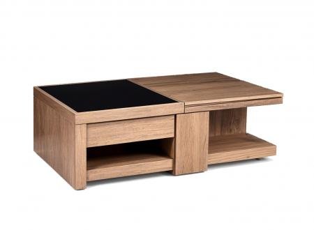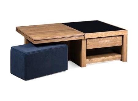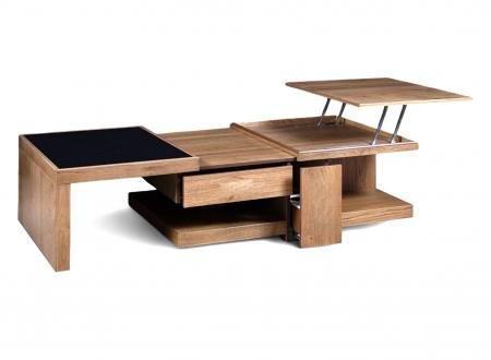 Πολυμορφικό τραπεζάκι σαλονιού κατασκευασμένο 100% από ξύλο επενδυμένο με φυσικό καπλαμά (canaletto) από ξύλο δρυός ή καρυδιάς. Είναι στολισμένο σε διάφορα σημεία με μέταλλο inox.