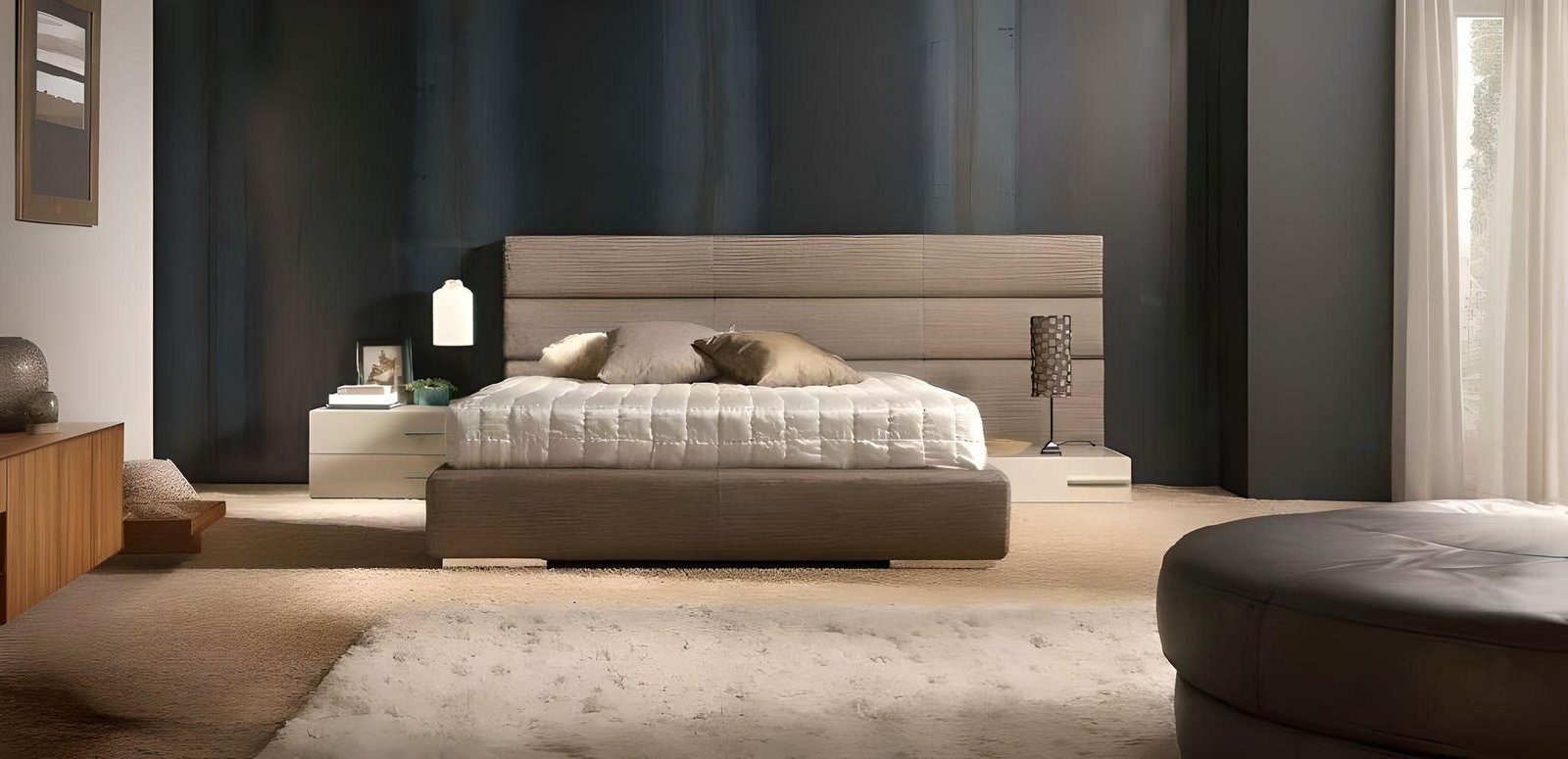 Η επιλογή των υφασμάτων για το ντύσιμο του κρεβατιού όσο και των χρωμάτων και των αποχρώσεων για τα κομοδίνα είναι αποκλειστικά δική σας υπόθεση. Είναι μια