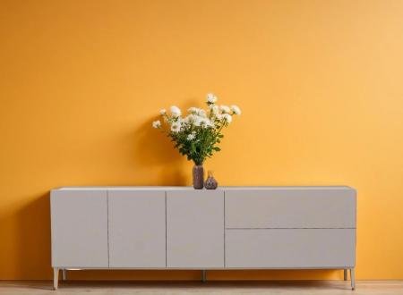 Ένας κομψός μπουφές σε απαλό γκρι τόνο. Οι καθαρές γραμμές και η απλή σχεδίαση του μπουφέ του δίνουν μια μοντέρνα αίσθηση. Τα λεπτά μεταλλικά πόδια προσθέτουν μια ελαφριά και αέρινη εμφάνιση.