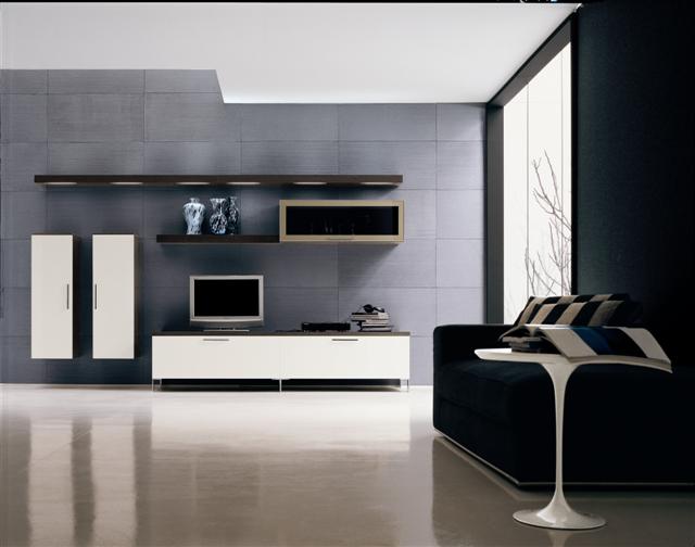 φυσικό ή οικολογικό καπλαμά (canaletto). Ανάλογα με τον σχεδιασμό της επιπλοσύνθεσης η τηλεόραση μπορεί να μπει κεντρικά ή παραπλεύρως. Μια σχετικά λιτή λύση που διαθέτει όμως απόλυτο σχεδιασμό που κυριαρχεί στον χώρο.