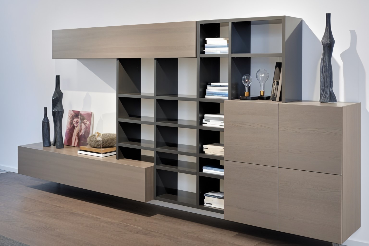 σύνθεση βιβλιοθήκης για μεγάλους χώρους με μεγάλους τοίχους (επιφάνειες). Συνδυάζει