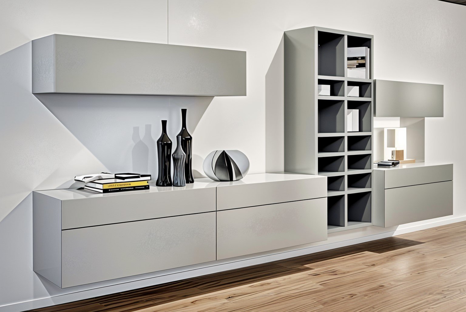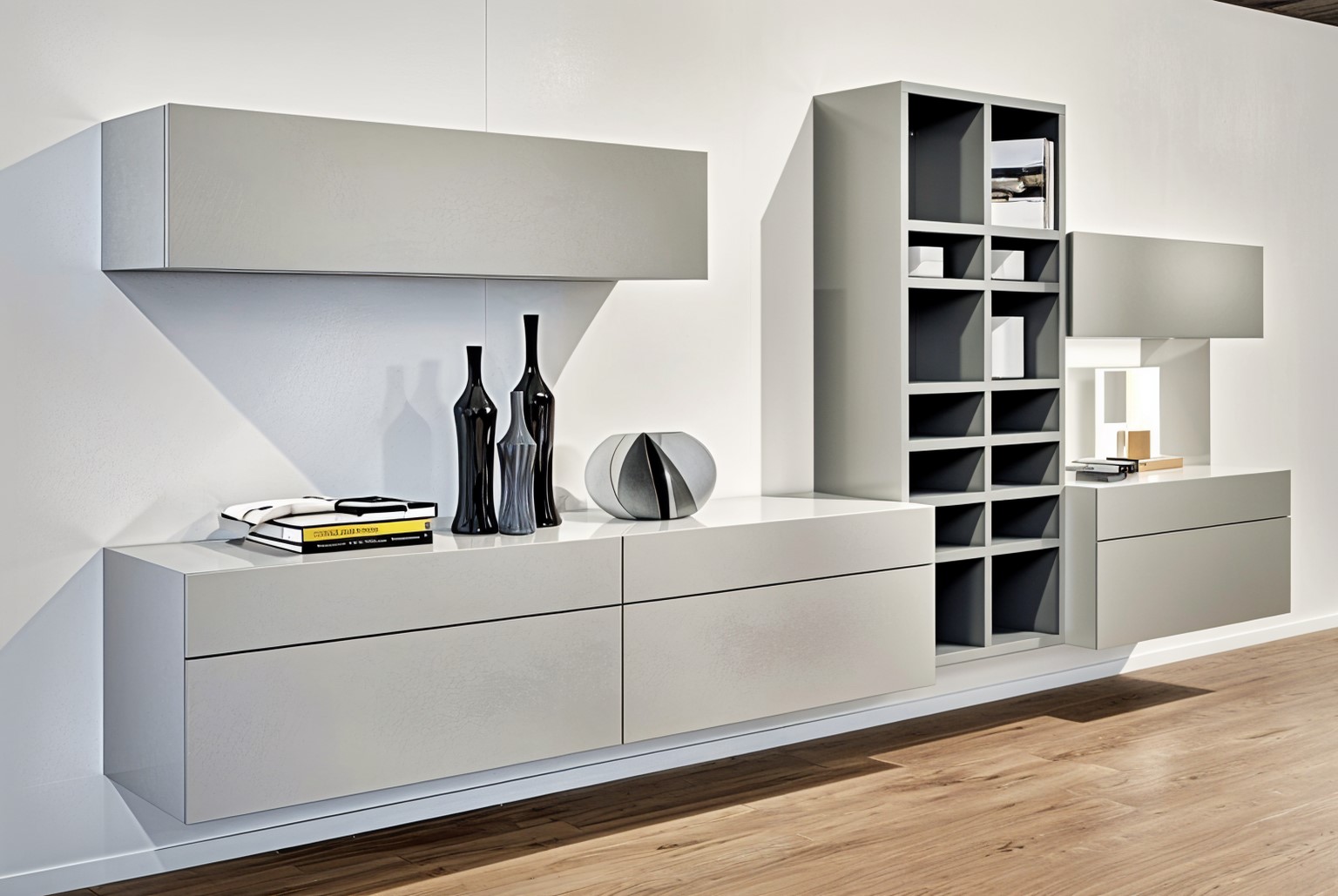 σύνθεση βιβλιοθήκης για μεγάλους χώρους με μεγάλους τοίχους (επιφάνειες). Συνδυάζει τα