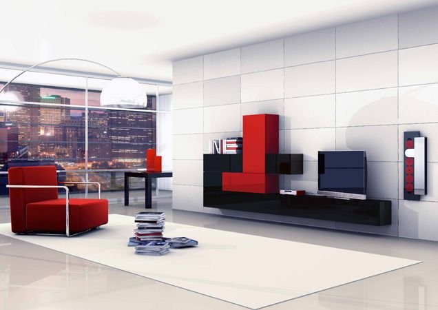 Για την συγκεκριμένη σύνθεση σας προτείνουμε διχρωμία μαύρου με ένα άλλο έντονο χρώμα όπως το κόκκινο σε γυαλιστερές επιφάνειες. Τα χρώματα που χρησιμοποιούμε είναι πάντα οικολογικά και της επιλογής σας.