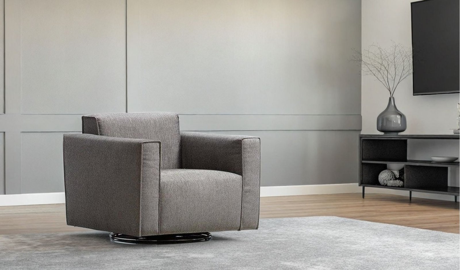 Το ύφασμα της πολυθρόνας διαθέτει μια λεπτή υφή, προσδίδοντας βάθος και μια αίσθηση ζεστασιάς, ενώ η διακριτική ραφή κατά μήκος των άκρων υπογραμμίζει την προσεγμένη κατασκευή. Ένα από τα πιο ενδιαφέροντα χαρακτηριστικά της είναι η κρυφή περιστρεφόμενη βάση, που επιτρέπει την εύκολη περιστροφή 360 μοιρών. Αυτή η λειτουργικότητα προσφέρει ευελιξία στον χρήστη, επιτρέποντας του να αλλάζει οπτική γωνία χωρίς κόπο, καθιστώντας την ιδανική για συζητήσεις ή για την παρακολούθηση τηλεόρασης.