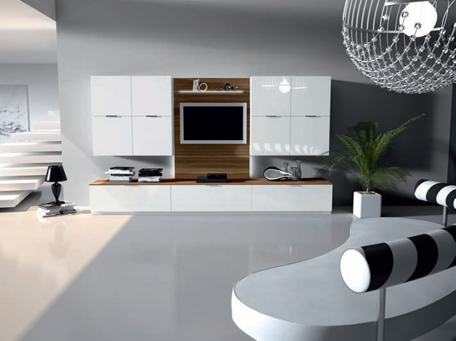 επιδαπέδιος μονοκόμματος οριζόντιος αποθηκευτικός χώρος. Από το κέντρο του ξεκινάει ξύλινη πλάτη πάνω στην οποία τοποθετείται η τηλεόραση (TV) σας, η οποία και βρίσκεται στο κέντρο όλης της σύνθεσης.