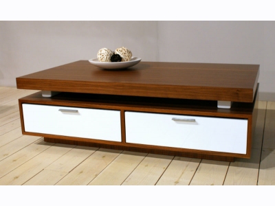 μοντέρνο ξύλινο τραπεζάκι με όλη την επιφάνεια του επενδυμένη με φυσικό καπλαμά (canaletto) από