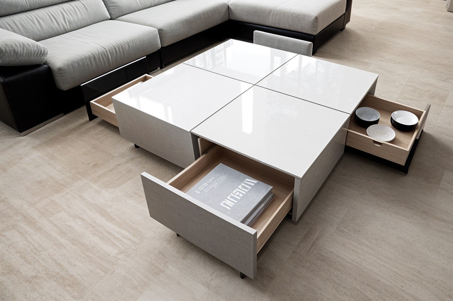 μινιμαλιστική σχεδίαση. Το συγκεκριμένο τραπεζάκι πρέπει να τοποθετηθεί σε κεντρικό σημείο του σαλονιού σας και να είναι πανταχόθεν ελεύθερο για να μπορούν να ανοίγουν όλα τα συρτάρια του.