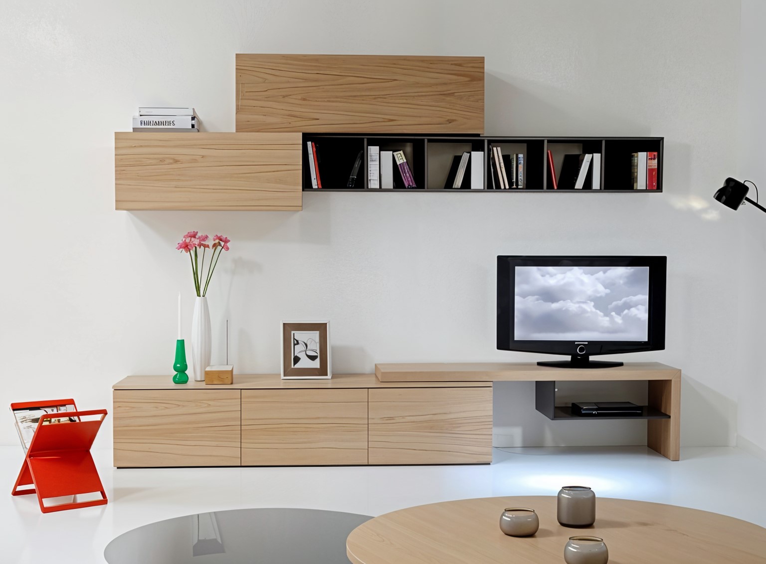ντουλάπια χωρίς πόμολα και μία βάση για την τοποθέτηση της τηλεόρασης (TV) σας.
