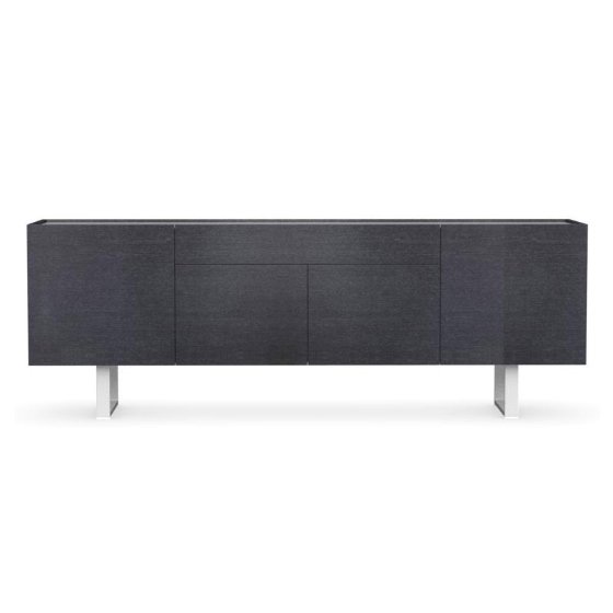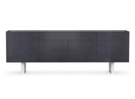 Μοντέρνος ξύλινος μπουφές Νιόβη με όλη την επιφάνεια του επενδυμένη με φυσικό η οικολογικό καπλαμά (canaletto) από ξύλο δρυς-καρυδιά-καστανιά και πολλά άλλα. Η σχεδίαση του μπουφέ είναι εξαιρετική, στοιβαρή και πολύ δυναμική. Ο μπουφές έχει τέσσερα τμήματα ισοκατανεμημένα κατά μήκος.