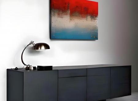 Τα δύο τμήματα στις άκρες έχουν δύο ντουλαπάκια, ενώ τα μεσαία έχουν και συρτάρια στο πάνω μέρος. Τα πόδια είναι στοιβαρά από ανοξείδωτο μέταλλο.