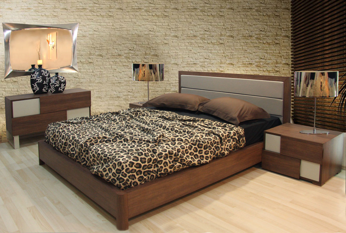 Κρεβατοκάμαρα κατασκευασμένη 100% από ξύλο και δέρμα (ή τεχνόδερμα).