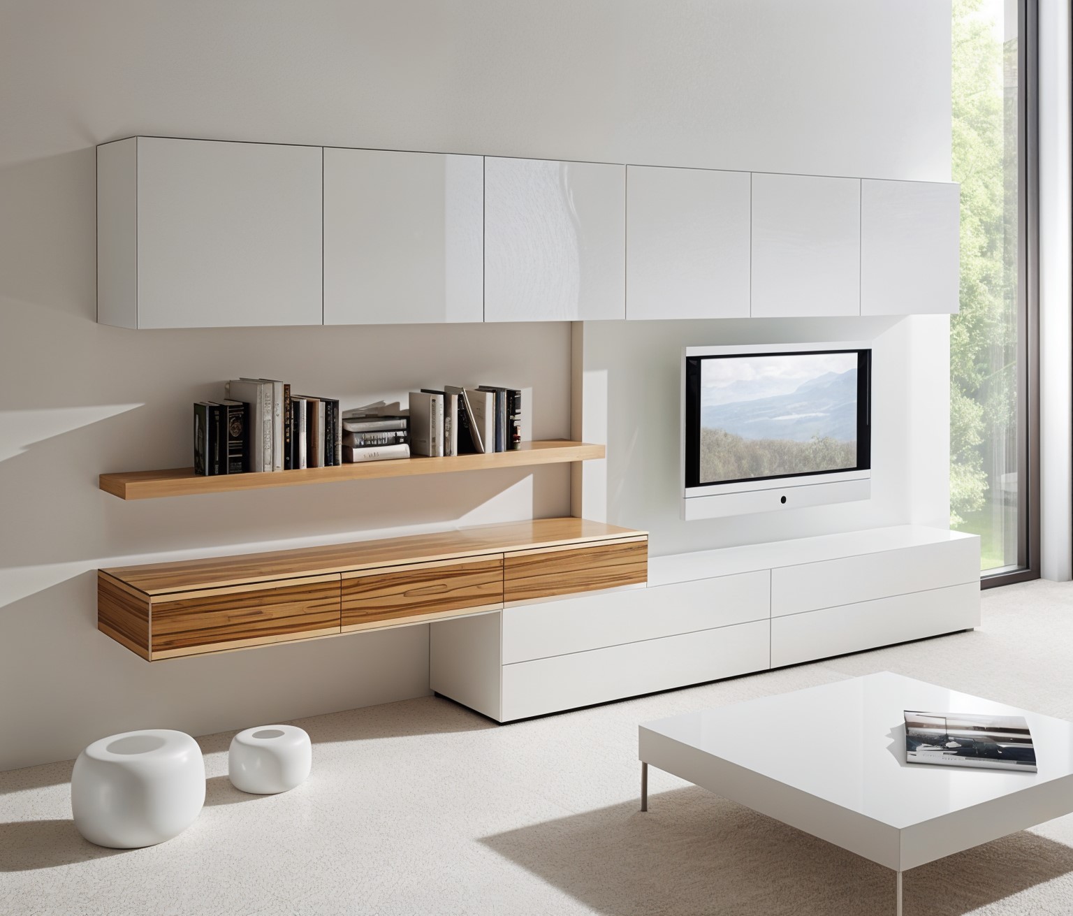Οι συνθέσεις είναι ελεύθερες και μπορούν να σχηματίζουν στον τοίχο σας τετράγωνα, ορθογώνια παραλληλόγραμμα, ελεύθερες γωνίες ή απλές ευθείες. Αντικαταστήστε τα ξεπερασμένα έπιπλα TV με τις μοντέρνες συνθέσεις μας και δώστε μια νέα όψη στο σαλόνι σας.
