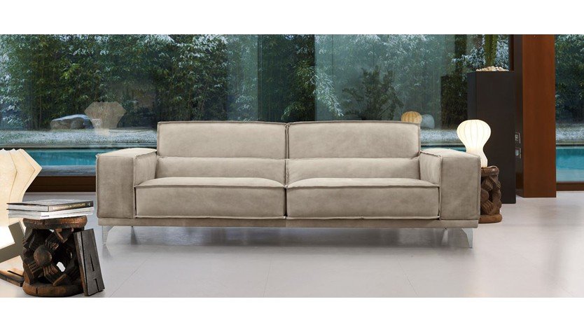 Ένας καταπληκτικός διθέσιος ή τριθέσιος καναπές με διπλά μονοκόμματα μαξιλάρια καθίσματος και πλάτης. Τα πόδια σε κάθε γωνία του μπορεί να είναι από νίκελ ή ξύλο και να έχουν το ύψος που εσείς επιθυμείτε.