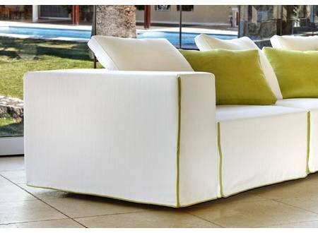 Για τον συγκεκριμένο καναπέ προτείνεται ντύσιμο με υφάσματα microfibra αλέκιαστα ή ημιαδιάβροχα υφάσματα. Επιλέγετε εσείς τα υφάσματα που σας αρέσουν από μία μεγάλη ποικιλία σχεδίων και χρωμάτων που διαθέτουμε. Δυνατότητα επιλογής μέσα από πολλές κατηγορίες υφασμάτων. Το ύφασμα του καναπέ είναι αποσπώμενο.