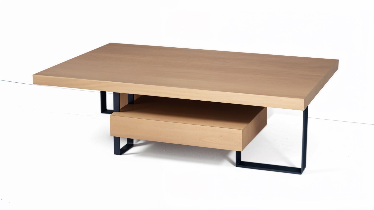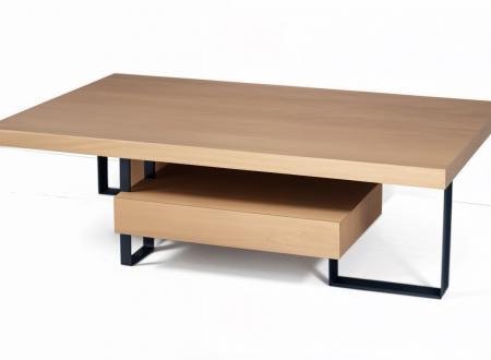 Όλες οι επίπεδες επιφάνειες του τραπεζιού σαλονιού είναι ξύλινες. Χαρακτηριστικά το κάνει να ξεχωρίζει το πάχος της άνω και κάτω επιφάνειας. Το τραπεζάκι διαθέτει ένα ανοιχτό αποθηκευτικό χώρο στον οποίο που μπορείτε να τοποθετήσετε βιβλία ή περιοδικά ή τα τηλεκοντρόλ των ηλεκτρονικών συσκευών σας.
