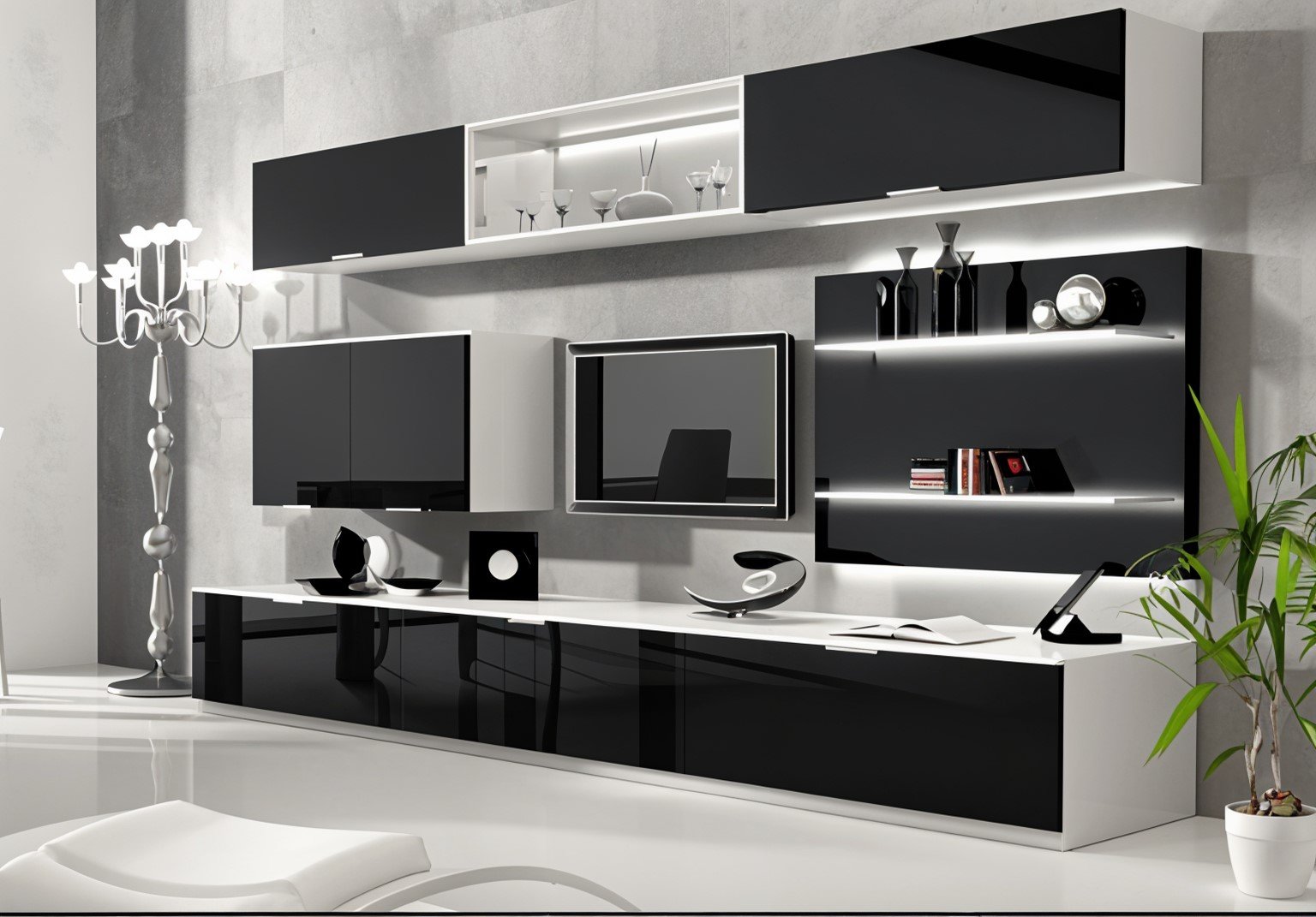 μοντέρνα επιτοίχια σύνθεση κατάλληλη για την φιλοξενία της τηλεόρασης σας. Αποτελείται από