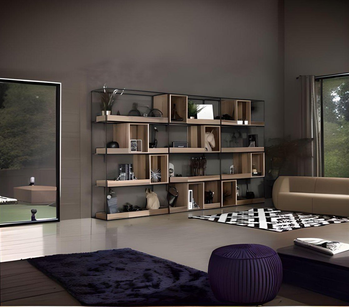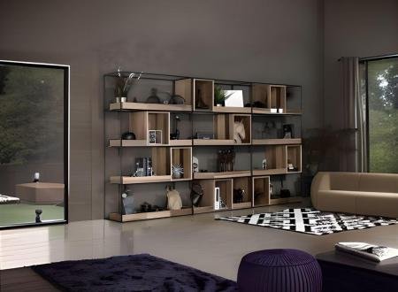Επιτοίχια σύνθεση βιβλιοθήκης για μεγάλους χώρους με μεγάλους μονοκόμματους τοίχους (επιφάνειες). Συνδυάζει επιτοίχια βιβλιοθήκη με ράφια για βιβλία και για άλλες χρήσεις.