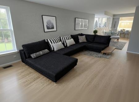 Τα αφράτα μαξιλάρια πλάτης και καθίσματος, μαζί με τα συμπληρωματικά διακοσμητικά μαξιλάρια σε απαλότερους τόνους, ενισχύουν την αίσθηση ζεστασιάς. Ο λιτός και καθαρός σχεδιασμός του καναπέ τονίζει τη λειτουργικότητά του, ενώ τα χαμηλά ξύλινα πόδια προσθέτουν μια διακριτική, φυσική πινελιά.