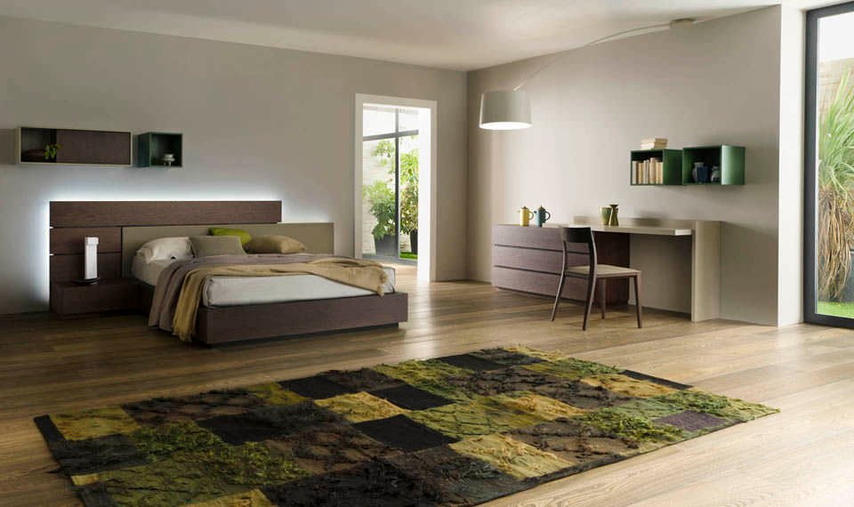 Κρεβατοκάμαρα κατασκευασμένη 100% από ξύλο επενδυμένο με φυσικούς καπλαμάδες (canaletto, ξύλο καρυδιάς ή δρυς).