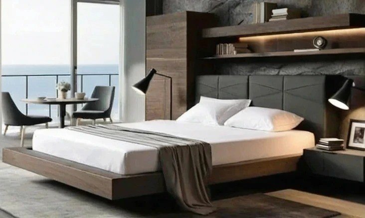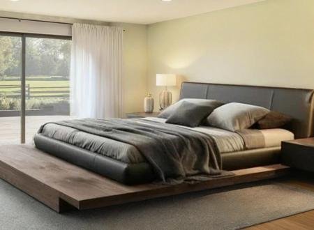 Το κρεβάτι είναι κατασκευασμένο από ξύλο και είναι υπερυψωμένο από το πάτωμα με βάση στήριξης (δεν έχει πόδια). Πλαισιώνεται από πλάτη (κεφαλάρι) που είναι ντυμένη με δέρμα / τεχνόδερμα . Το δέρμα / τεχνόδερμα μπορεί να είναι στο χρώμα του ξύλου ή και να επιλέξετε διαφορετικό χρώμα για να δημιουργήστε αντίθεση.